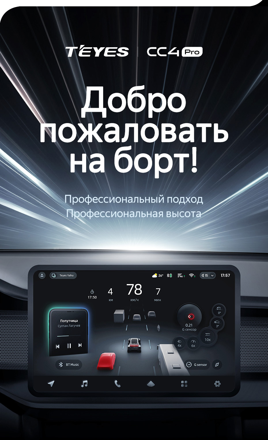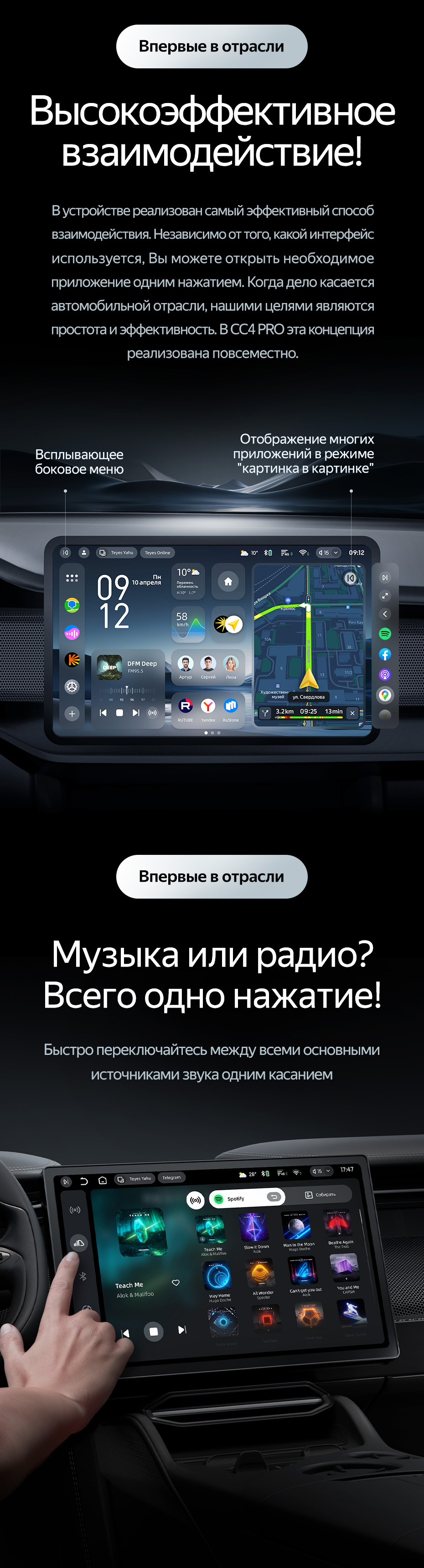 Магнітола Teyes CC4 Pro – це вдосконалений сучасний пристрій, який завдяки ідеально збалансованому програмному забезпеченню вражає швидкістю роботи операційної системи Teyes OS, а також якістю звуку завдяки DSP-процесору.