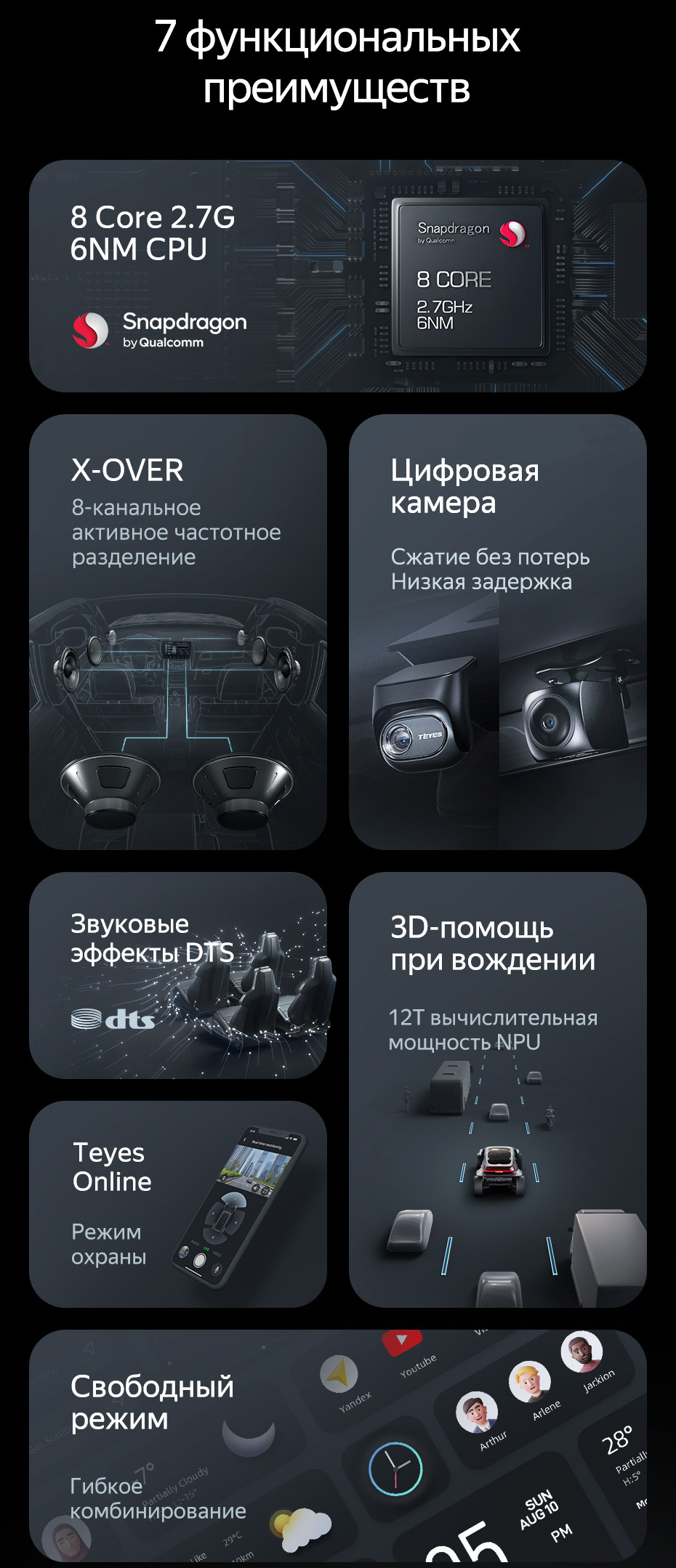 Операційна система Teyes OS: Спеціально розроблена операційна система на базі Android 13 забезпечує швидку та стабільну роботу пристрою. Інтерфейс оптимізований для використання в автомобілі, з підтримкою голосових команд та інтеграцією штучного інтелекту для зручного керування.