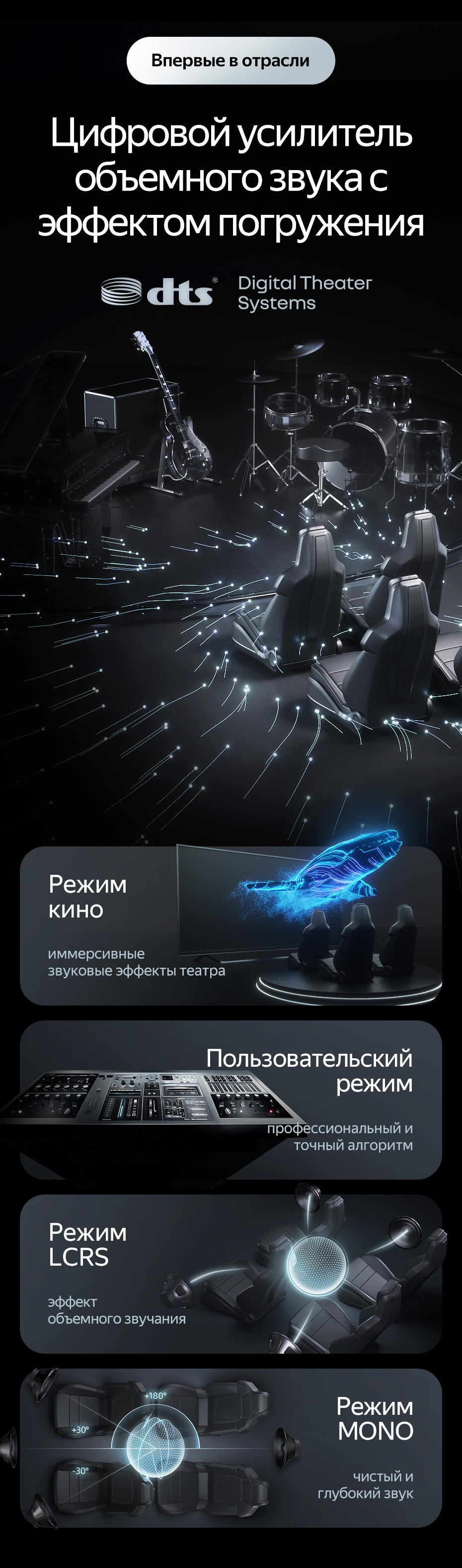 Потужна аудіосистема: Радіоприймач оснащений цифровим підсилювачем TAS6424, який забезпечує чистий та потужний звук. Підтримка технології DTS забезпечує кращу якість звуку під час перегляду фільмів, прослуховування музики та радіо завдяки покращеному об'ємному звучанню та глибоким басам.