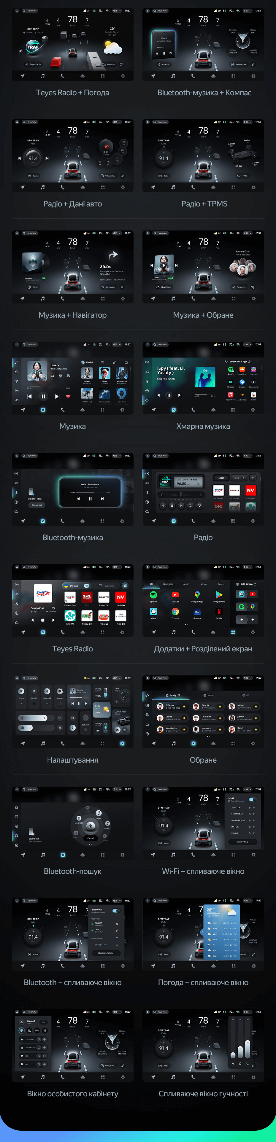 Покращена безпека: Вбудована система безпеки Teyes Online дозволяє контролювати стан вашого автомобіля в режимі реального часу, отримувати сповіщення про рух та несанкціоновані дії через мобільний. додаток.
